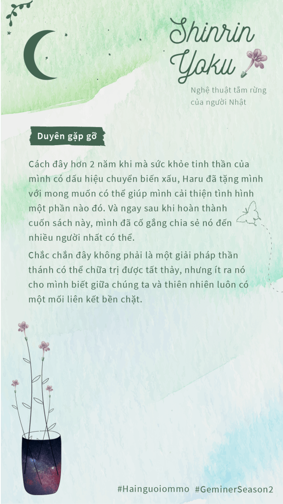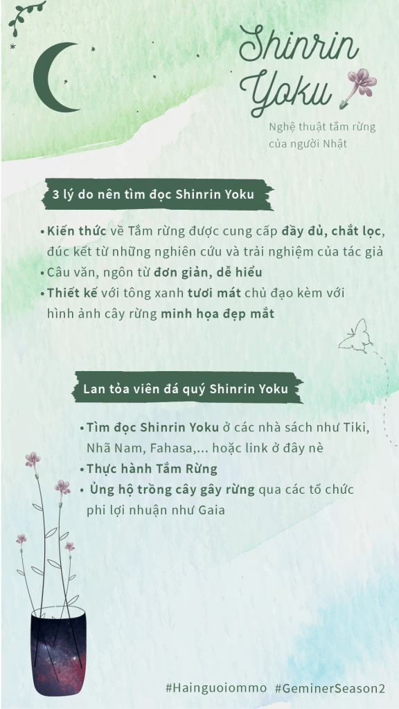 Sách Shinrin Yoku – Nghệ thuật tắm rừng của người Nhật được viết bởi PGS – Bác sĩ người Nhật Qing Li là viên đá quý đầu tiên trong chuỗi Geminer Season 2 của Hainguoiommo.