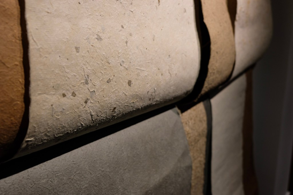 Triển lãm “Lãm” được xây dựng xoay quanh những chất liệu rất quen thuộc với văn hoá Việt Nam — đặc biệt là giấy dó và các hình ảnh gắn với ký ức Trung Thu tuổi thơ: Lồng đèn, mâm cỗ, hay những mặt nạ giấy bồi, …
